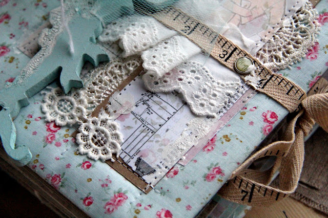 Обложку украсила деревянным манекеном и кружевом, завязывается альбом на хлопковую ленту - а-ля сантиметр.